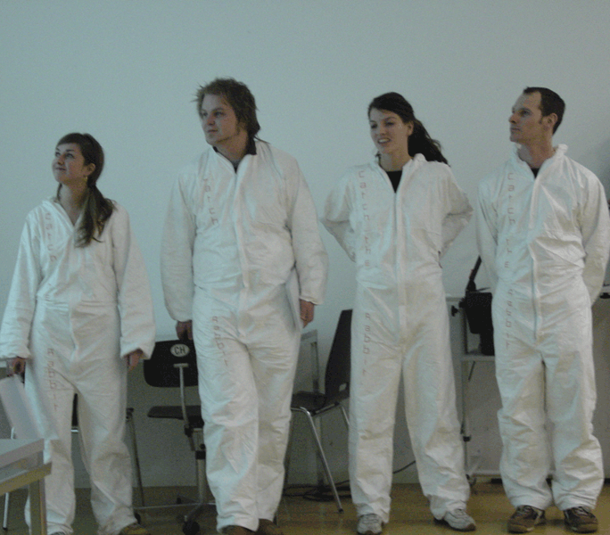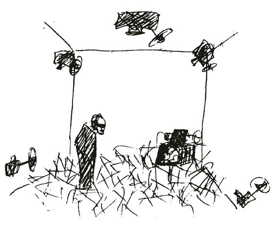 The only thing you can see, with the Electronic-Glass, is yourself in the room, but from different views (received with 4 Cameras). This view is changing several times without your control.